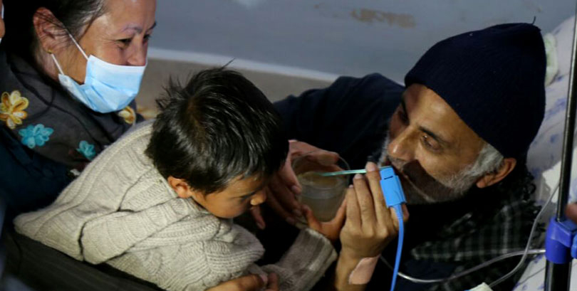 भूकम्पमा परेका अढार्इ बर्षीया बालिका मर्साङ तामाङको हातबाट जुस पिउँदै डा. केसीले अनसन तोडेका हुन् ।