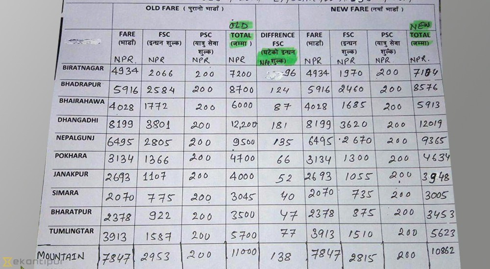 हवाई भाडा ह्वातै घट्यो (भाडादरसहित)