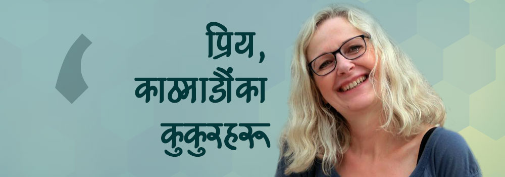 प्रिय कुकुर, काठमाडौंमा तिमी जस्तै ३० हजार जतिको संख्यामा छन् । जता गयो उतै छन् । तिमीहरू मध्ये कुनै हँसिलो खुशीलो कुनै कुकुर पनि भेट्न सकिन् । भोकले छट्टपटिएका, खानाको लागि संघर्ष गरिरहेका, सडका बेवारिसले पल्टिरहेका, गर्भवती र घाइतेहरू जताततै देखें । मान्छे तिमीलाई यातना दिन्छन्, त्यसको कुनै कारण नै चाहिँदैन । मात्र रमाइलोका लागि ।